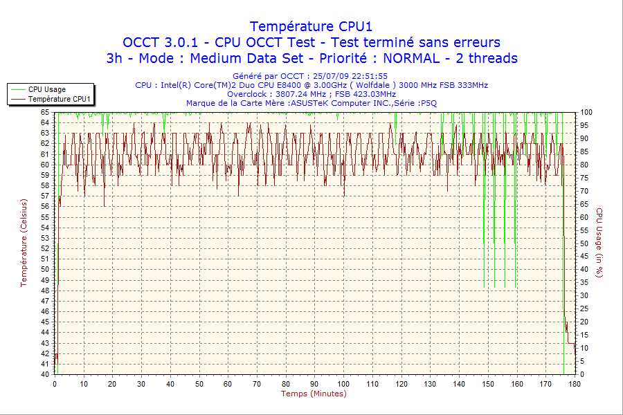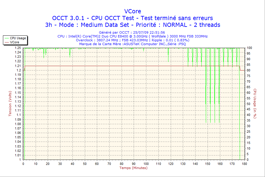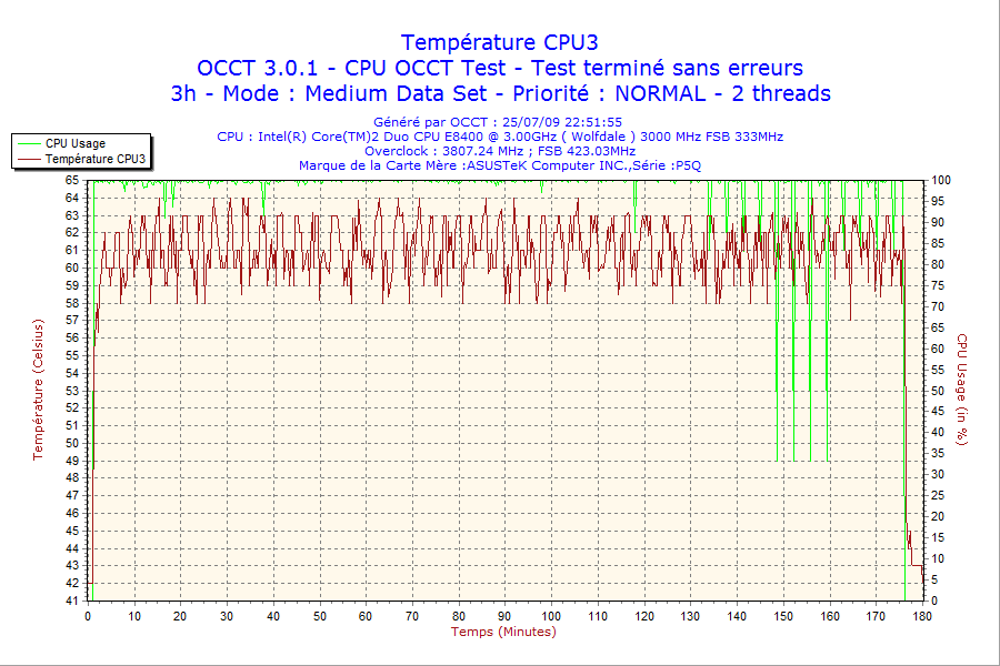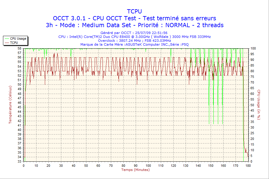 Overclocking processeur Intel Core 2 Duo E8400 à 3 GHz @ 3.807 GHz