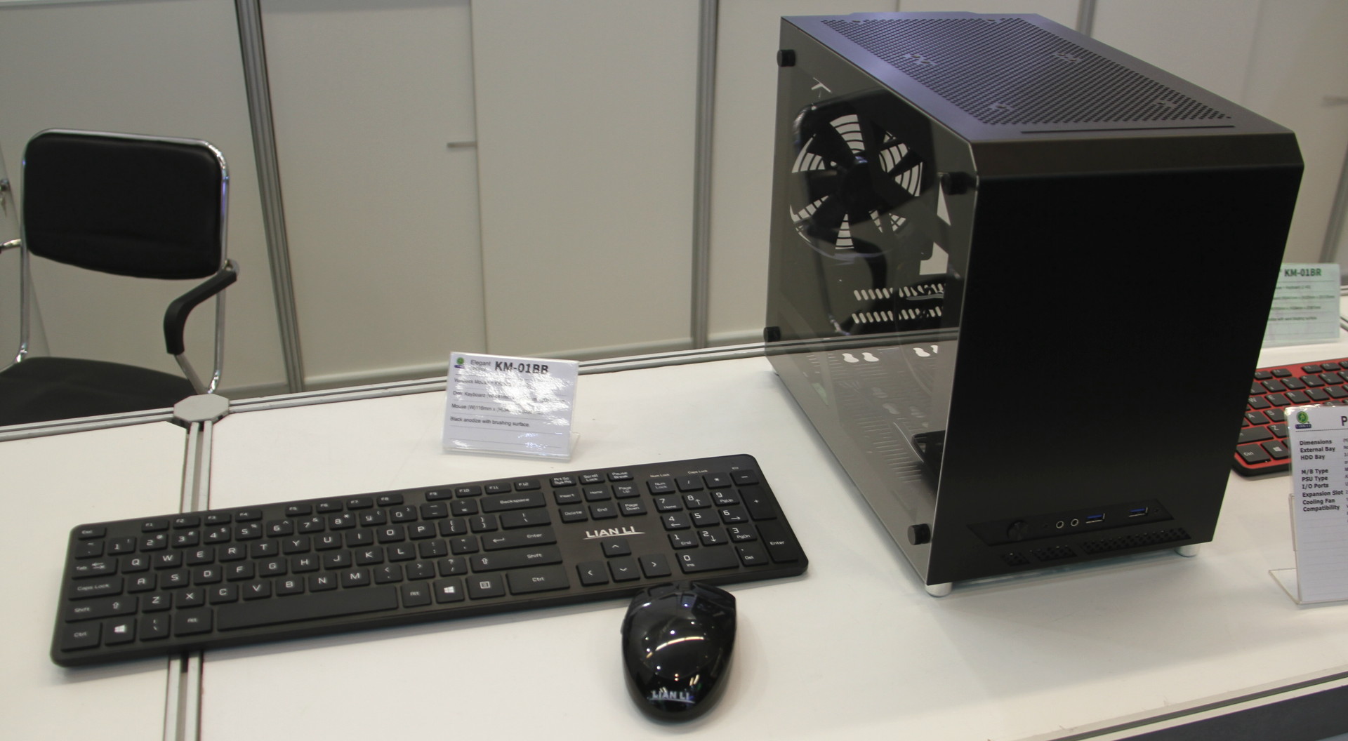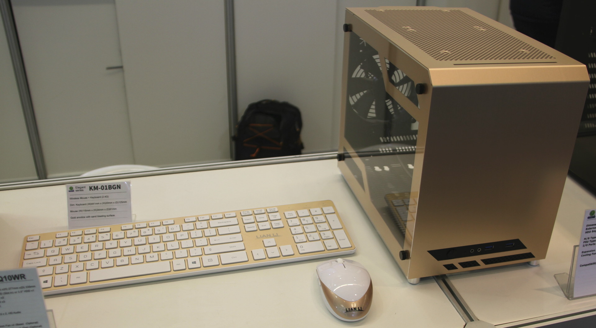 Enfin, Lian Li prépare un kit clavier/souris qui sera proposé dans les différents coloris de ses boîtiers (noir, rouge, kaki, champagne…). Le clavier est à peu près finalisé et reçoit un plateau supérieur en aluminium, mais la souris est encore à l'étude et l'exemple, très basique, n'est utilisé qu'à titre d'illustration.