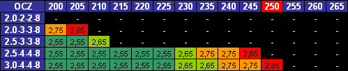 Pour finir, les barrettes OCZ ce sont montrées assez limitées. Certes, les spécifications sont respectées, mais pas plus ! Le comportement semble assez similaire à celui rencontré avec les mémoires Corsair et GeIL, ce qui confirmerait l´utilisation de die Hynix, mais avec bien entendu des MHz en moins (15 environ par rapport à Corsair). OCZ réserve peut être ses meilleures puces à la version Gold de ces barrettes ...