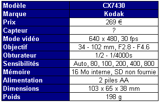 Kodak propose un 4 mégapixels avec zoom optique encore moins cher que celui de Fuji : 269 euros. Deuxième bonne nouvelle : il est meilleur que le Fuji.