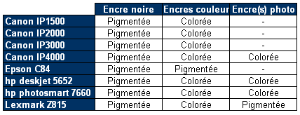 Retour sur les encres et sur LexmarkPour en revenir aux encres (voir page des tirages photo monochromes), voici ce qu´utilise chacune :