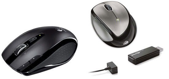 Microsoft Mobile Memory Mouse 8000 : Microsoft se différencie encore avec un concept novateur : une souris avec et sans fil (via une système à la Apple, aimanté), et avec 1 Go de mémoire dans la clé de transmission sans fil. Original ! Son défaut : la clé est encombrante, il faut le retirer lors des déplacements.