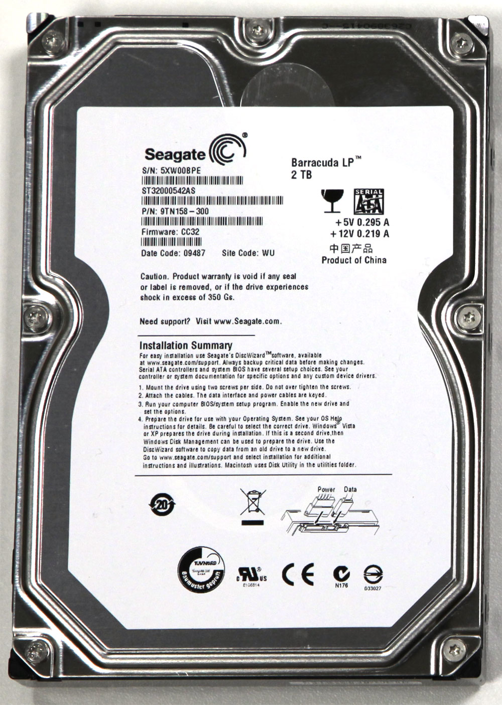 - Seagate Barracuda LP ST32000542AS (5400 tpm, 32 Mo de cache)