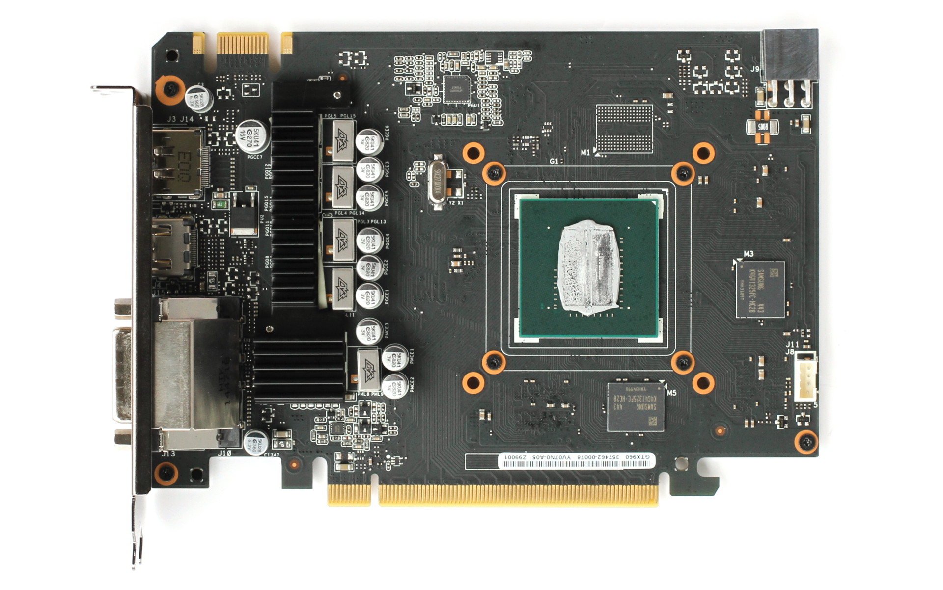 Le PCB en lui-même est très proche de celui de modèles précédents, par exemple les GTX 760 de la marque. L'étage d'alimentation exploite 4 phases pour le GPU et une de plus pour la mémoire GDDR5 Samsung.