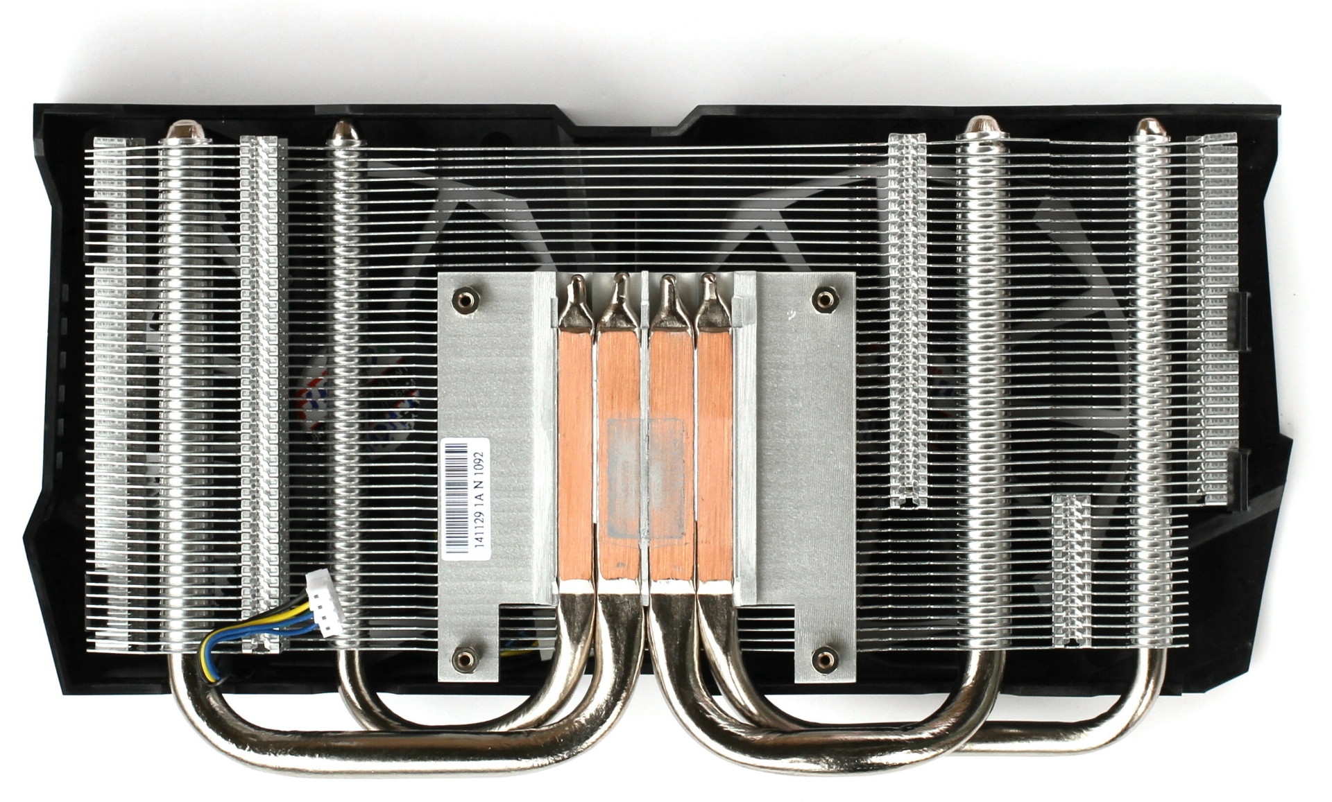 Comme vous pouvez l'observer, seuls 2 caloducs touchent le GPU et ce uniquement partiellement. Ce bloc de refroidissement est de toute évidence mal optimisé pour le GM206, et certains n'hésiteront pas à ironiser sur l'argument du contact direct cher à la marque… Cela ne veut cependant pas dire qu'il ne permet pas de refroidir suffisamment bien le GM206, ce n'est pas le cas, mais qu'il n'aide pas Asus à proposer une carte silencieuse.