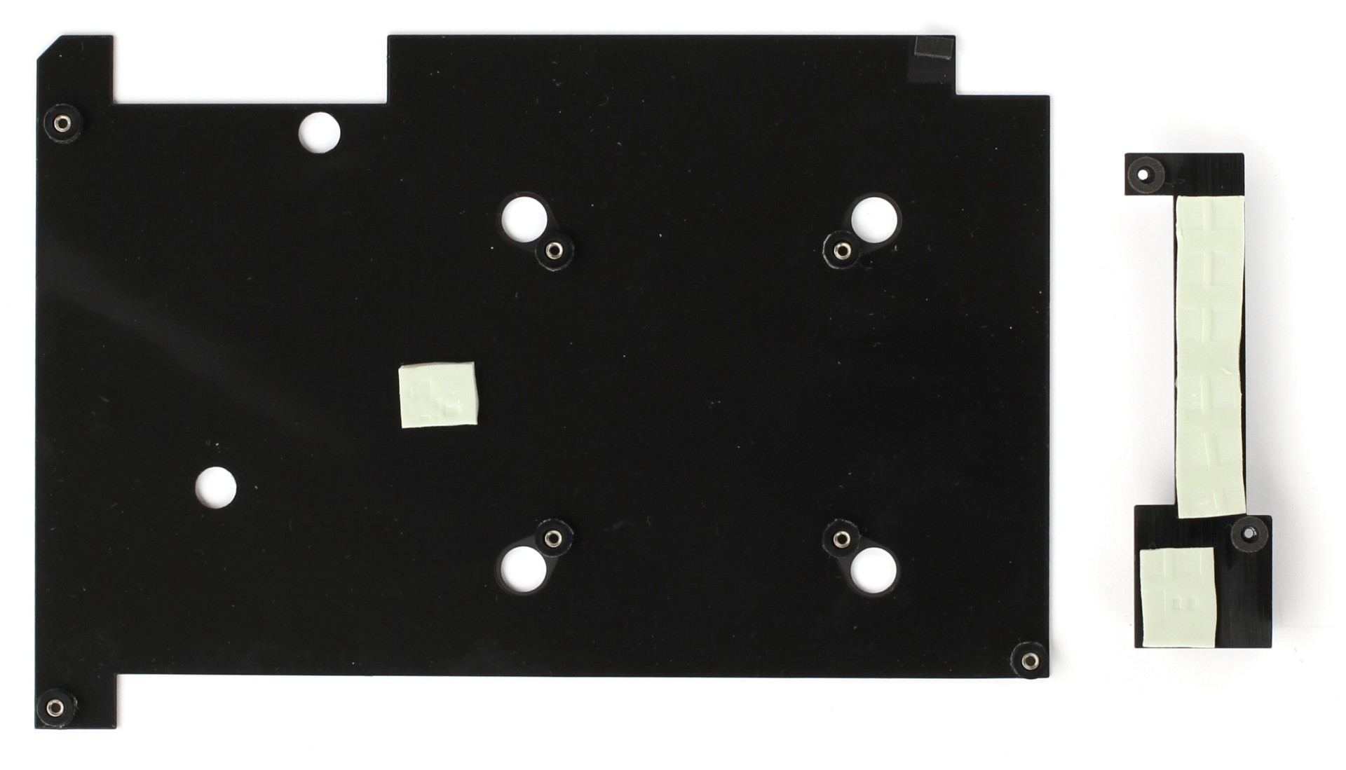 Asus a placé un petit radiateur sur l'étage d'alimentation et une plaque arrière qui ne peut être démontée sans retirer le ventirad, et poser des problèmes éventuels de garantie, puisqu'elle est visée depuis la face avant.