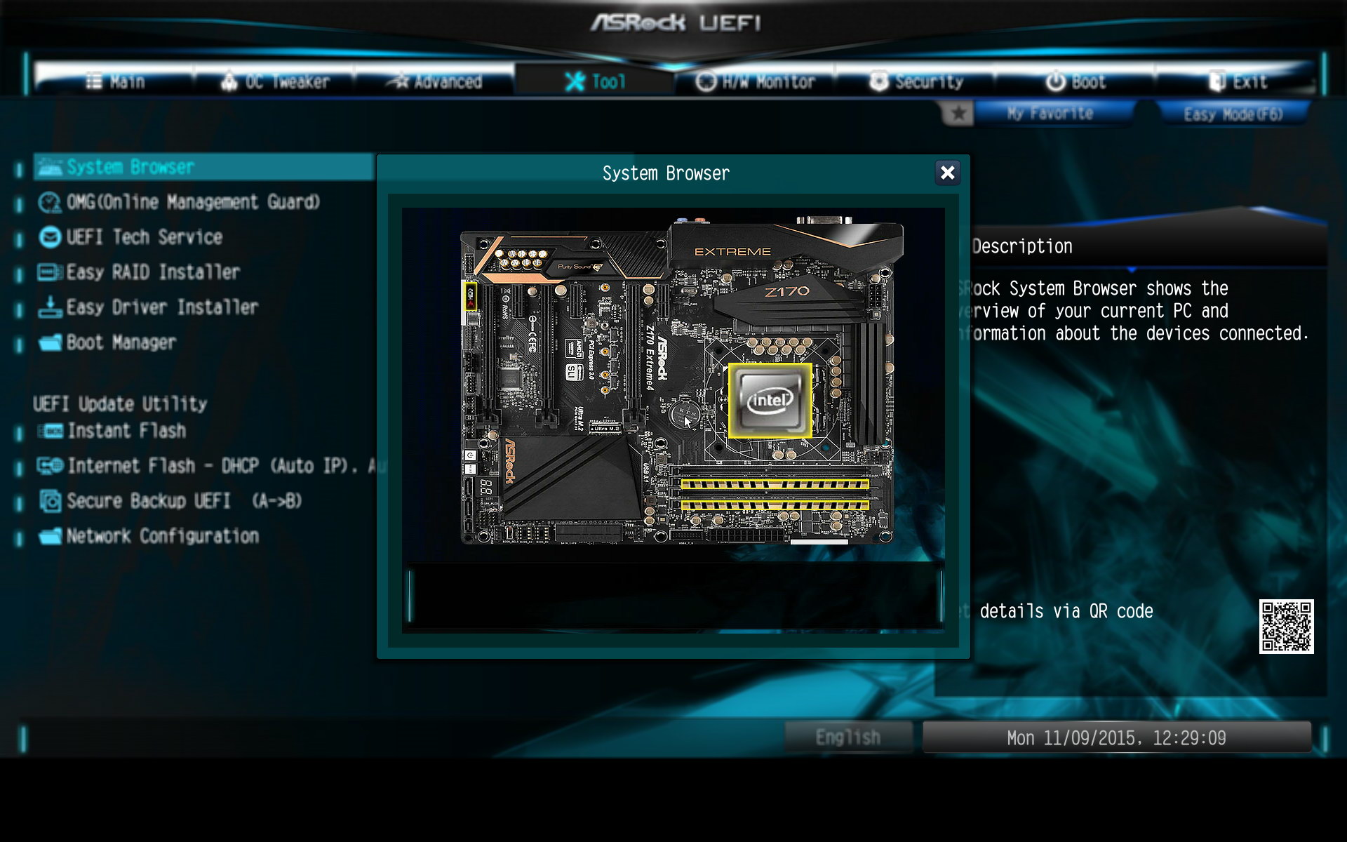 Du côté des outils, on retrouve des classiques de chez Asrock à savoir le récapitulatif de ce qui est branché sur votre système, un panneau pour bloquer l'accès réseau durant certaines heures, mais aussi des choses plus originales comme la possibilité d'envoyer un mail via le BIOS au service technique (y compris en attachant une pièce jointe !). On retrouve aussi des choses que l'on avait déjà vu comme l'installeur RAID qui copie automatiquement le driver RAID Windows du CD fourni sur une clef USB pour faciliter l'installation, ou l'Easy Driver Installer qui porte assez mal son nom, en pratique il télécharge le driver réseau directement chez Asrock pour le copier sur une clef USB (l'Intel I219-V n'est pas reconnu par Windows, y compris Windows 10). En plus des flasheurs BIOS on a aussi la possibilité de copier l'UEFI principal vers celui de backup (deux BIOS distincts accessibles par un switch sont disponibles).