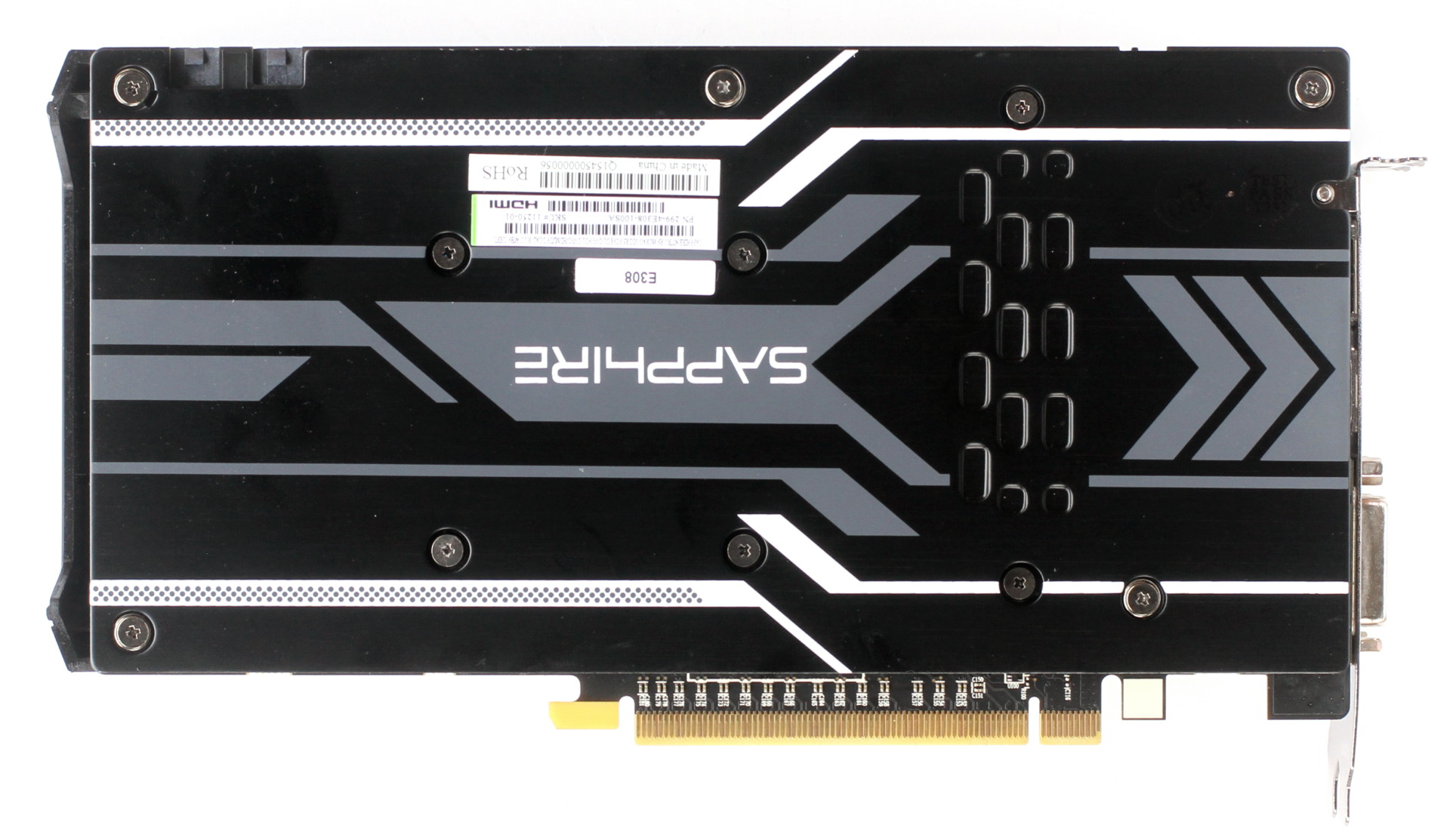 Au niveau de la connectique, ce PCB propose deux sorties DVI Dual Link, une sortie DisplayPort 1.2a et une sortie HDMI 1.4a. Une des deux sorties DVI supporte un adaptateur VGA, fourni par Sapphire.