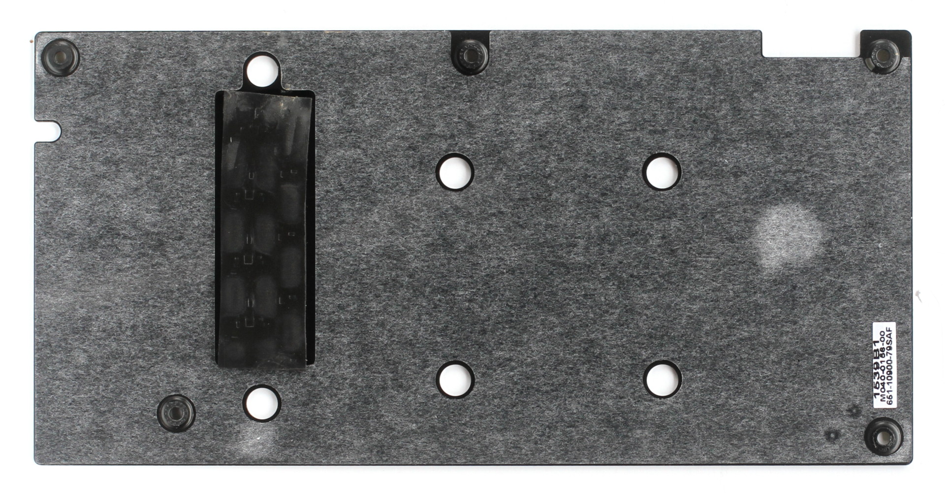 Plusieurs plaques d'aluminium sont intégrées à ce bloc principal qui fait donc également office de dissipateur pour les composants sensibles de l'étage d'alimentation et pour les puces GDDR5. Sapphire a eu la bonne idée d'usiner la backplate de manière à ce qu'elle fasse également office de dissipateur pour l'étage d'alimentation.