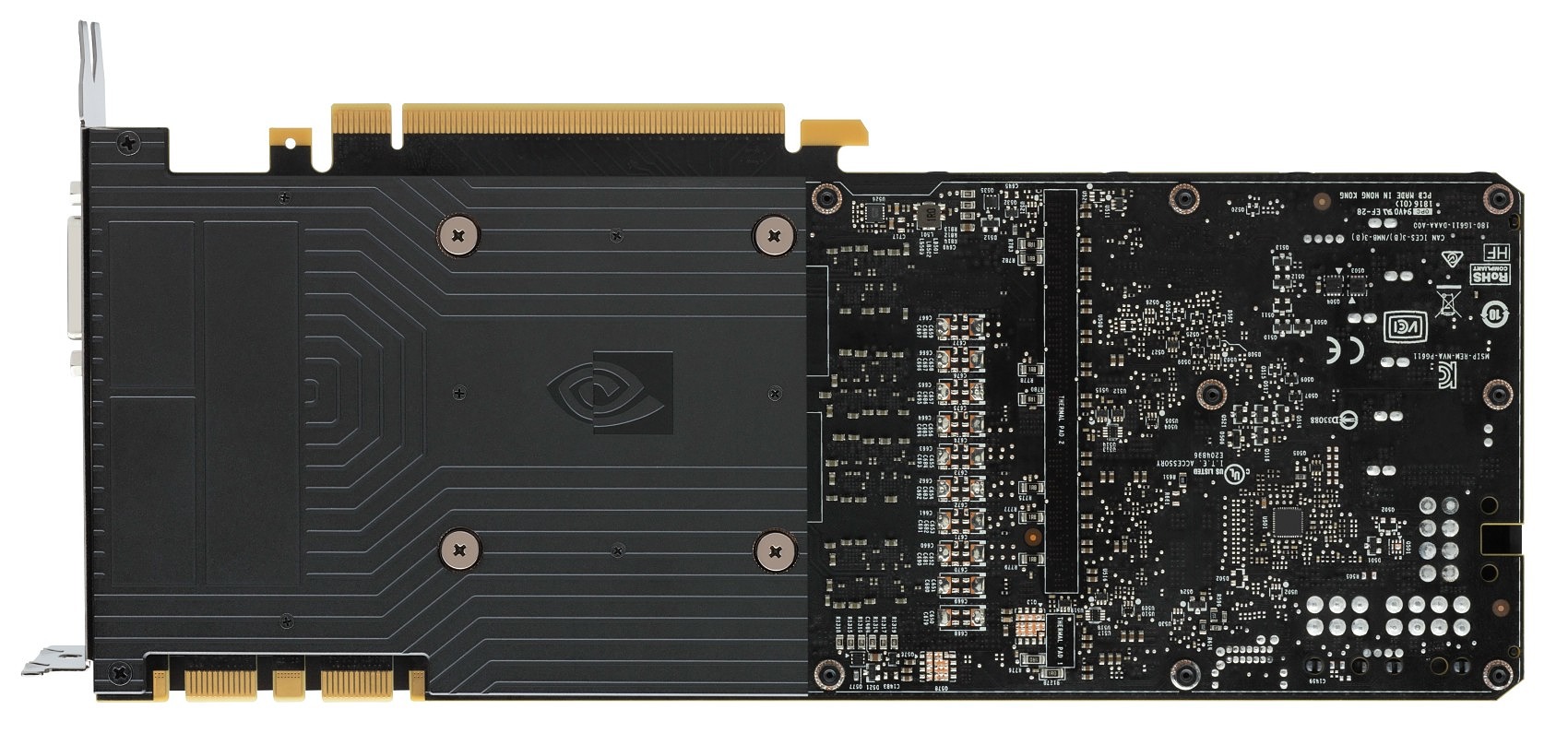 Enfin, la connectique vidéo est similaire à celle des autres GeForce de référence : une DVI Dual Link, une HDMI et 3 DisplayPort, dont 4 peuvent être utilisées simultanément. Il y a cependant une petite différence visible pour les plus attentifs : il s'agit d'une sortie DVI-D et non plus DVI-I. En d'autres termes, la Titan X ne supporte pas la connectique VGA.