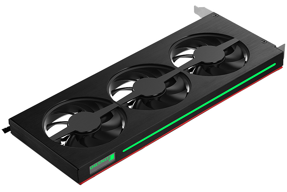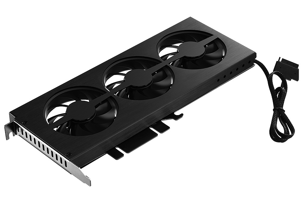 Jonsbo, connu pour ses boîtiers aluminiums abordables, lance un produit pour le moins curieux, le VF-1 . Il vient se loger dans un emplacement de carte fille, fait 27cm de long et intègre 3 ventilateurs 80mm destinés à apporter un flux d'air supplémentaire vers la carte graphique (ou tout autre carte fille). On notera que des solutions à base d'un ou deux ventilateurs, certaines avec extraction de l'air du boîtier, existent déjà comme ce PCI Slot Fan Holder de GELID.