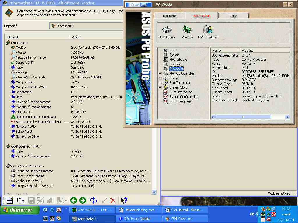 Overclocking processeur Intel Pentium 4 2.4C à 2.4 GHz @ 3.018 GHz