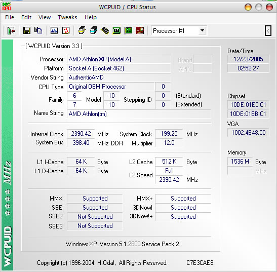 Overclocking processeur AMD Athlon XP 3200+ Barton à 2.2 GHz @ 2.4 GHz