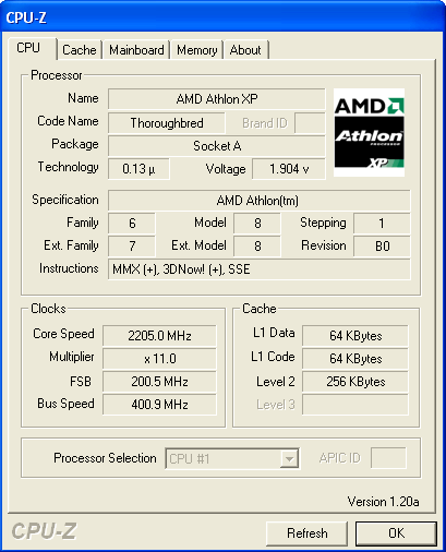 Overclocking processeur AMD Athlon XP 2200+ à 1.8 GHz @ 2.2 GHz