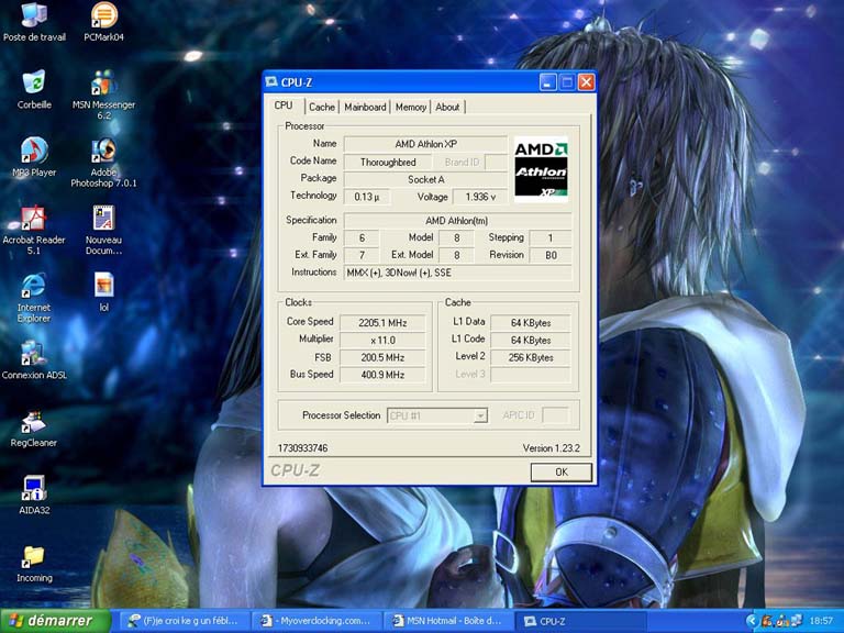 Overclocking processeur AMD Athlon XP 2200+ à 1.8 GHz @ 2.205 GHz