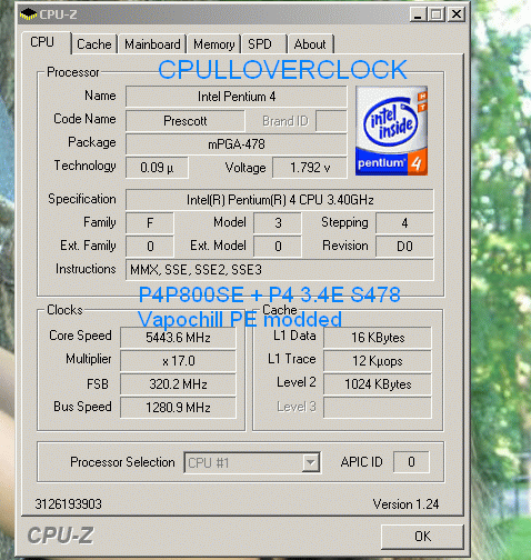 Overclocking processeur Intel Pentium 4 3.4E à 3.4 GHz @ 5.443 GHz