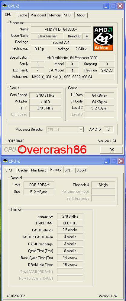 Overclocking processeur AMD Athlon 64 3000+ à 2 GHz @ 2.703 GHz