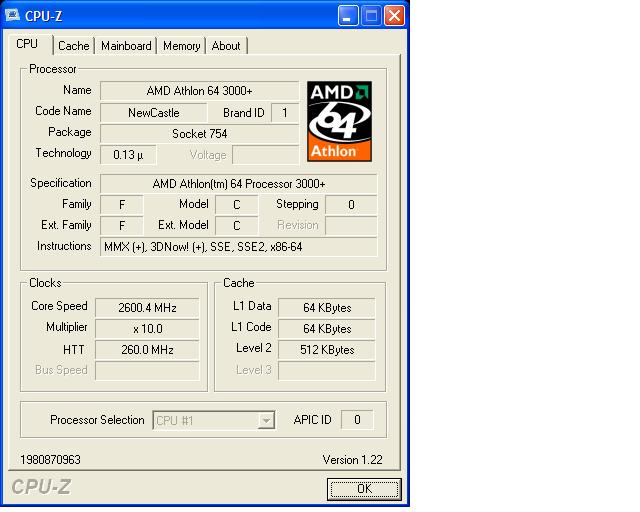 Overclocking processeur AMD Athlon 64 3000+ à 2 GHz @ 2.6 GHz