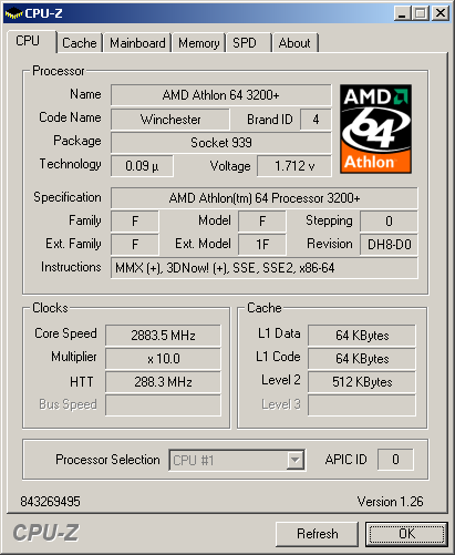Overclocking processeur AMD Athlon 64 3200+ à 2 GHz @ 2.883 GHz