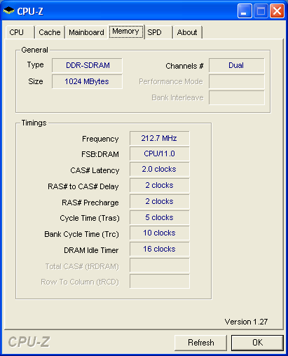 DDR : 212 Mhz@2-2-2-5-1T (coeff 166)