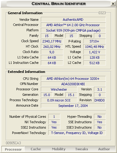 Overclocking processeur AMD Athlon 64 3200+ à 2 GHz @ 2.34 GHz