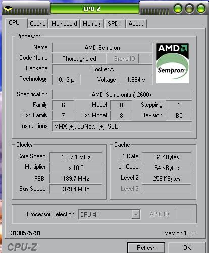 Overclocking processeur AMD Sempron 2400+ à 1.667 GHz @ 1.897 GHz