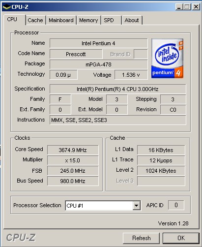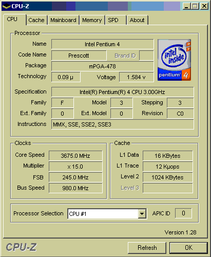Overclocking processeur Intel Pentium 4 3.0E à 3 GHz @ 3.675 GHz