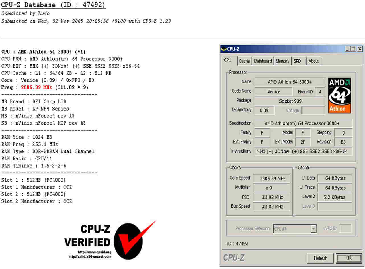 Overclocking processeur AMD Athlon 64 3000+ à 1.8 GHz @ 2.807 GHz
