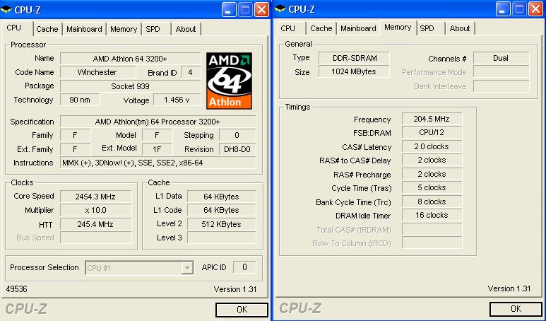Overclocking processeur AMD Athlon 64 3200+ à 2 GHz @ 2.45 GHz