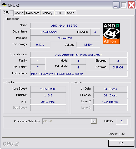 Overclocking processeur AMD Athlon 64 3700+ à 2.4 GHz @ 2.635 GHz