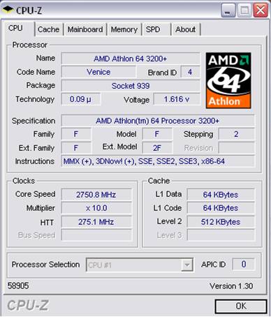 Overclocking processeur AMD Athlon 64 3200+ à 2 GHz @ 2.75 GHz