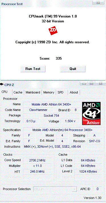 Overclocking processeur AMD Athlon 64 3400+ à 2.2 GHz @ 2.706 GHz