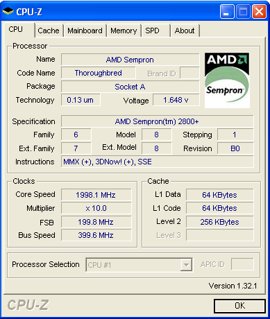 Overclocking processeur AMD Sempron 2400+ à 1.667 GHz @ 1.998 GHz