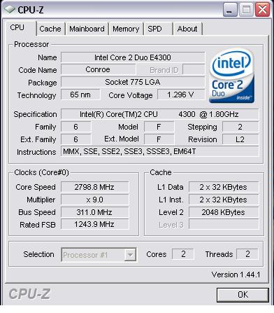 Overclocking processeur Intel Core 2 Duo E4300 à 1.8 GHz @ 2.8 GHz
