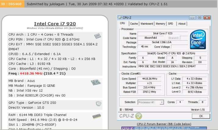 Overclocking processeur Intel Core i7 920 à 2.666 GHz @ 4.418 GHz
