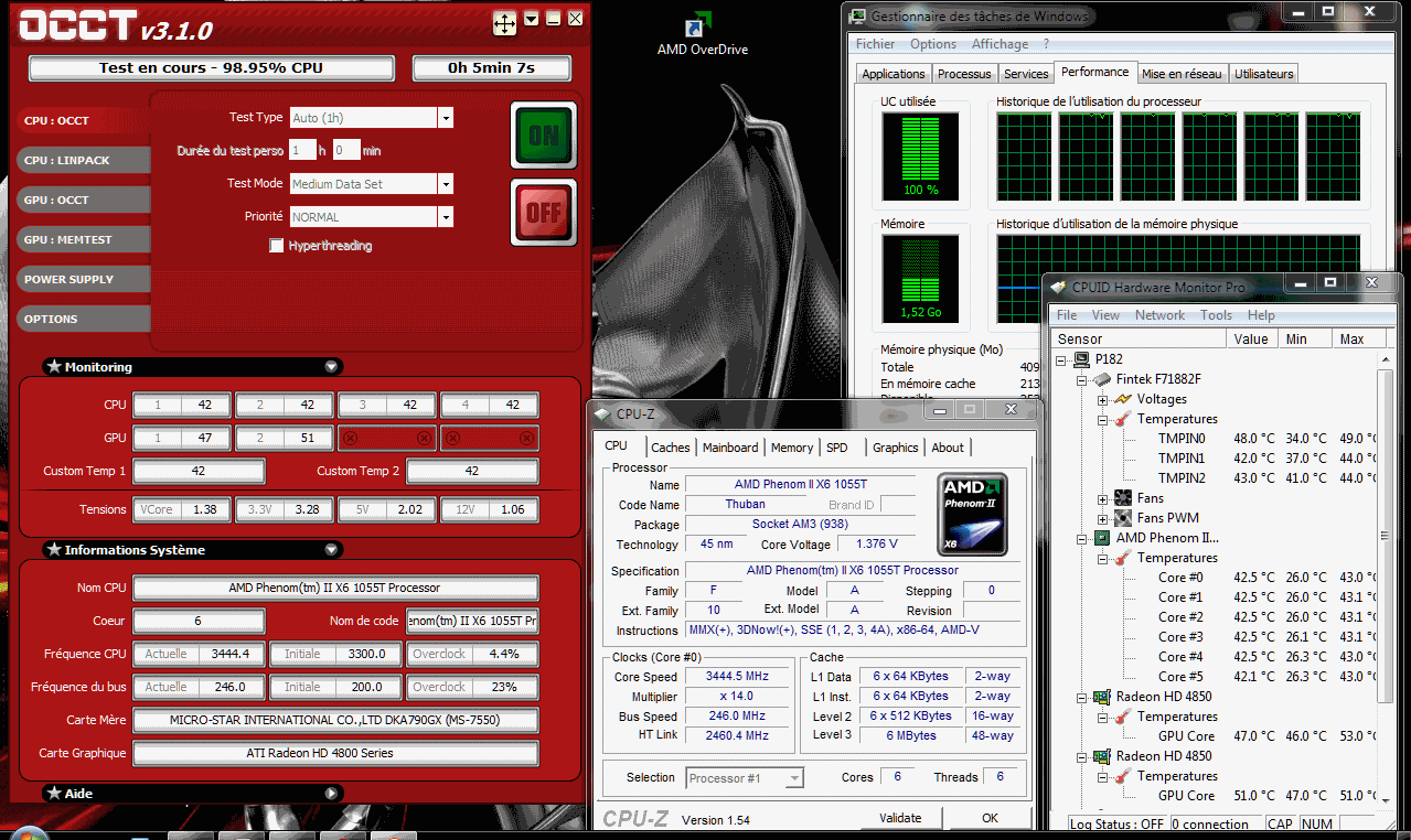 Overclocking processeur AMD Phenom II X6 1055T à 2.8 GHz @ 3.444 GHz