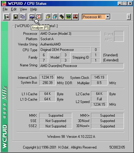 Overclocking processeur AMD Duron à 800 MHz @ 1.234 GHz