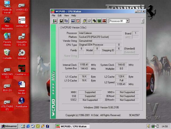 Overclocking processeur Intel Celeron à 800 MHz @ 1.152 GHz
