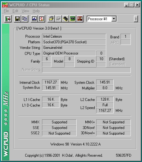 Overclocking processeur Intel Celeron à 800 MHz @ 1.16 GHz