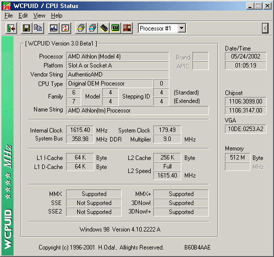 Overclocking processeur AMD Athlon Thunderbird à 1.4 GHz @ 1.615 GHz