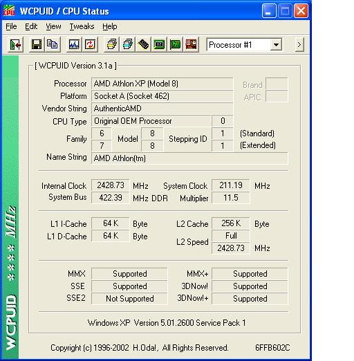 Overclocking processeur AMD Athlon XP 2600+ FSB333 à 2.083 GHz @ 2.428 GHz