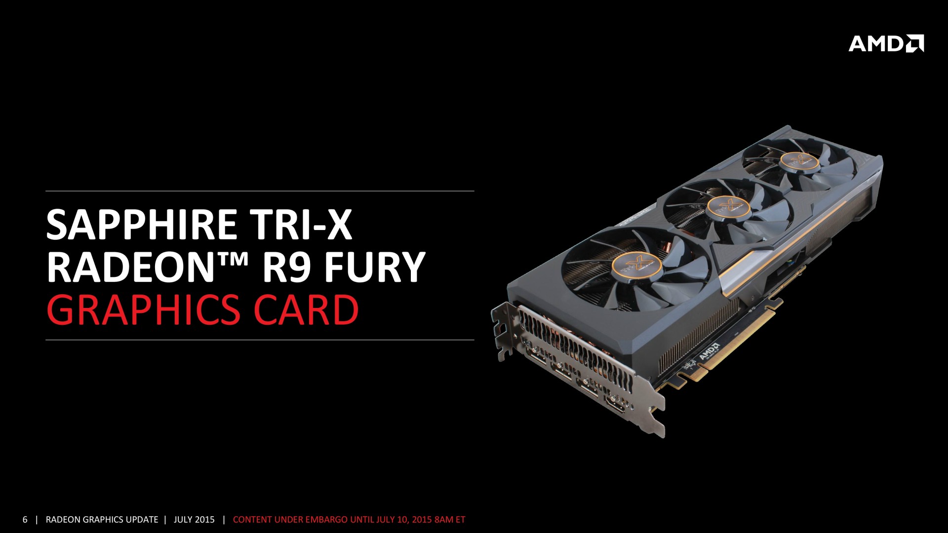 Parallèlement à cet envoi, c'est hier seulement qu'AMD nous a précisé que les tests seraient en fait publiés ce jour et non le 14 juillet… un timing impossible en ce qui nous concerne comme vous l'aurez compris. Nous ne savons pas réellement ce qui s'est passé au niveau des échantillons, qui sont peu nombreux, mais le moins que l'on puisse dire c'est que nous avons connus AMD et Sapphire plus énergiques pour s'assurer que nous puissions vous proposer un test à temps.