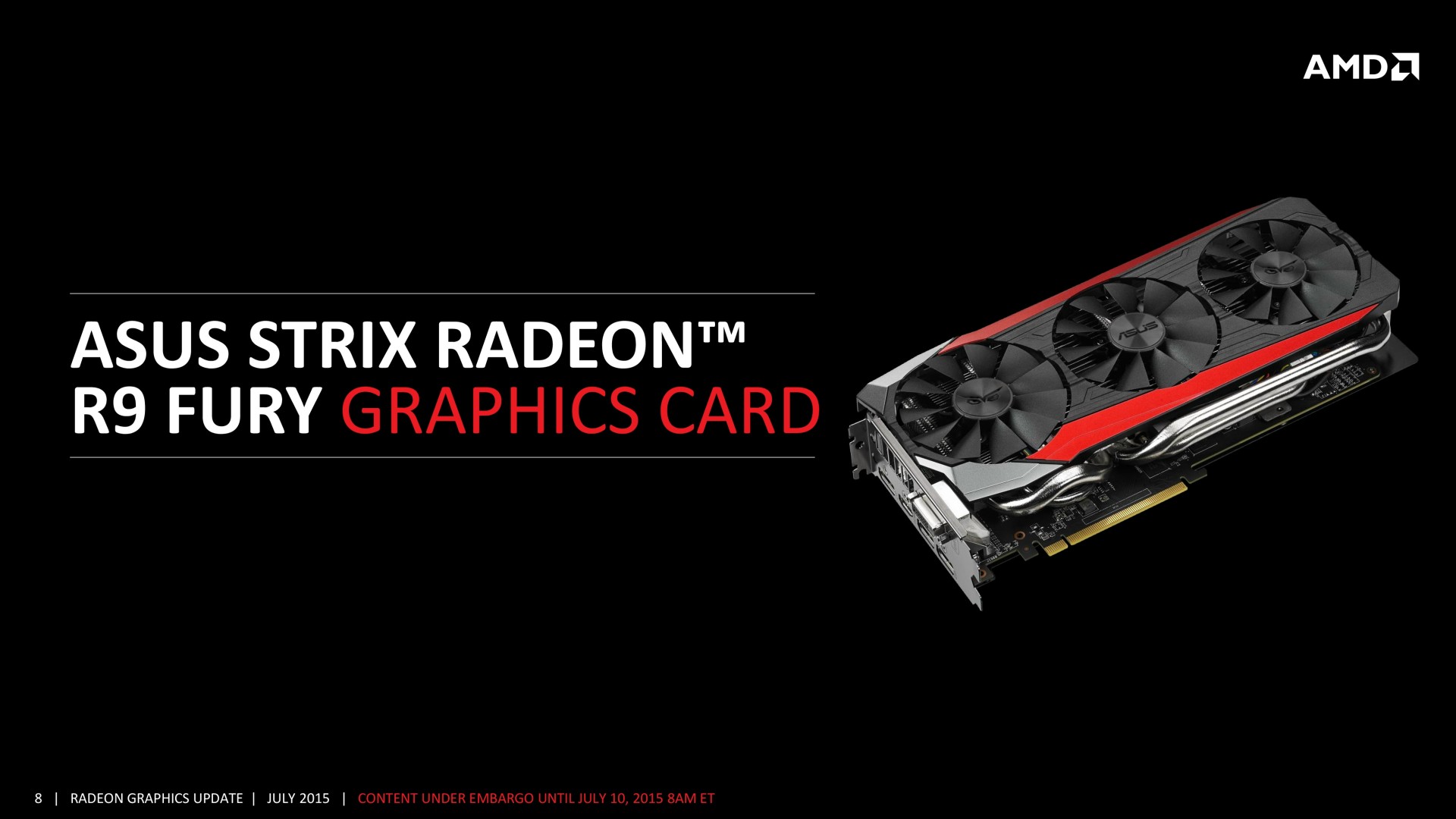 Les Radeon R9 Fury Tri-X de Sapphire seront disponibles à partir du 14 juillet avec de très faibles volumes alors qu'il faudra attendre la fin du mois pour voir débarquer dans le commerce le modèle Strix d'Asus.