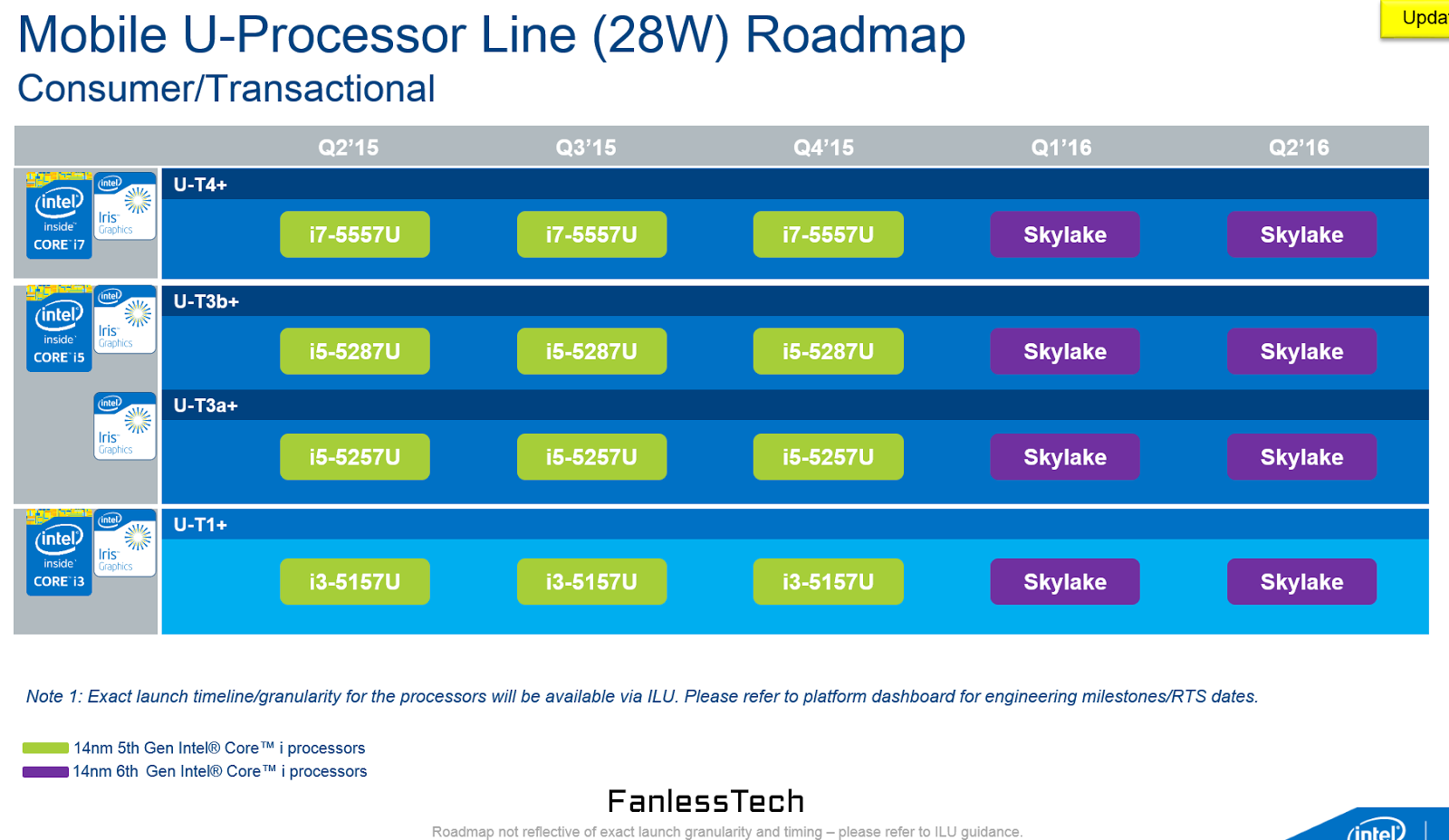 FanlessTech a publié le détail de future gamme mobile Skylake en version U et 15 watts prévue pour la rentrée :