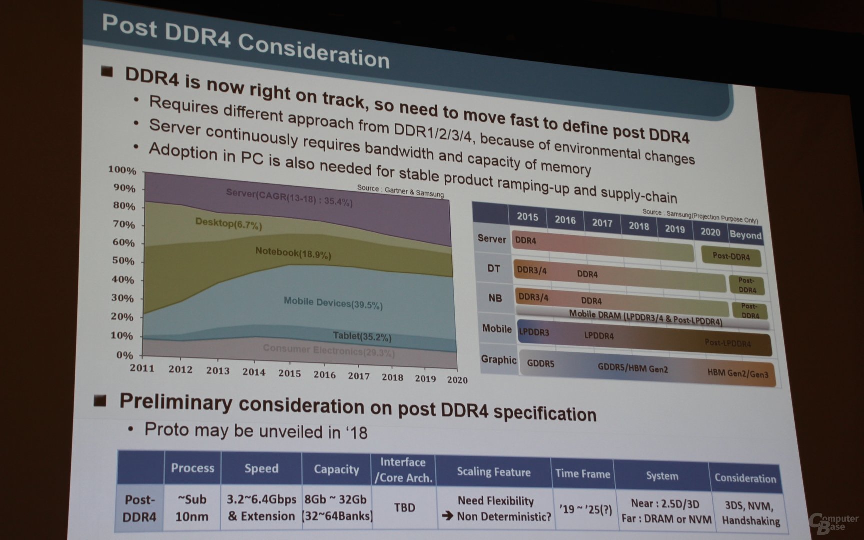 Alors que la DDR4 commence à peine à se démocratiser avec l'arrivée de Skylake, Samsung a profité de l'IDF pour parler de l'après DDR4. D'après les projections de Samsung, cette mémoire devrait faire son apparition aux alentours de 2020, en premier lieu sur serveurs.