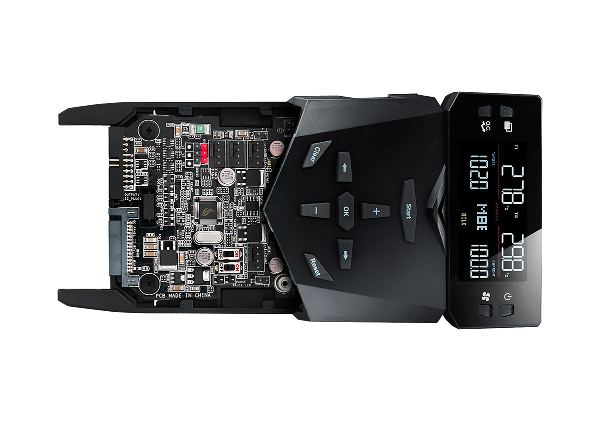 Comme d'habitude sur ce segment le paquet est mis sur l'overclocking avec notamment l'OC Panel, un périphérique pouvant faire office de rhéobus et de console d'overclocking externe et qui intègre Subzero Sense (deux connecteurs pour thermocouples) et VGA Hotwire (résistance variables pour l'overvolting de GPU).