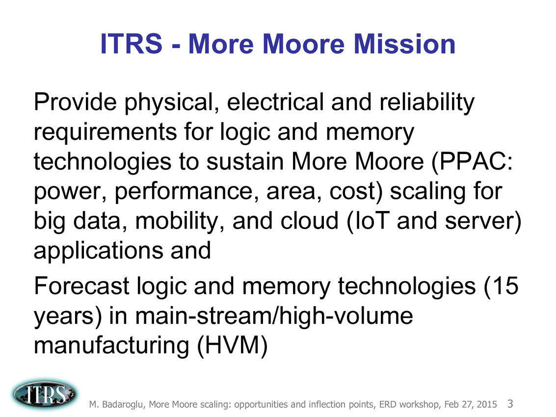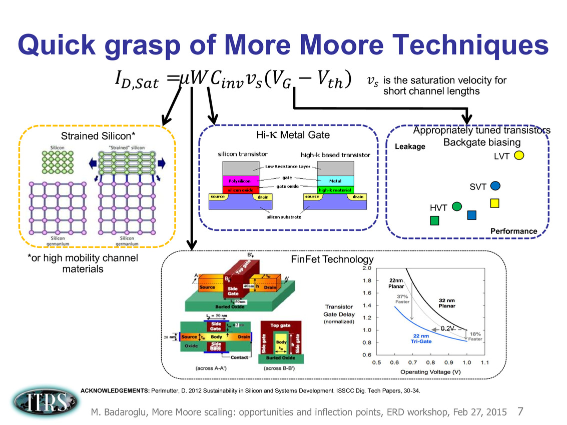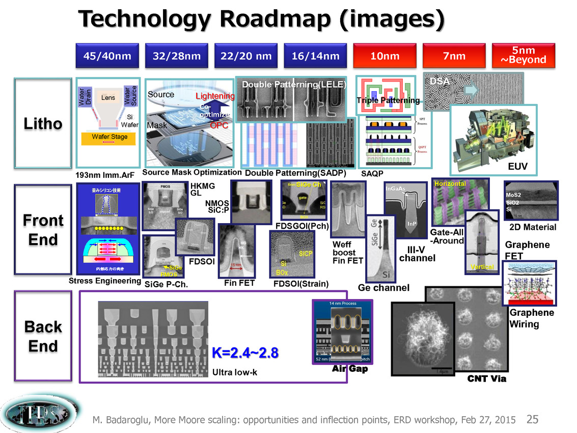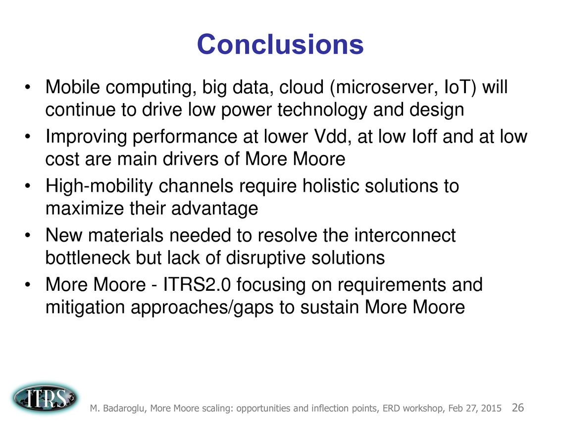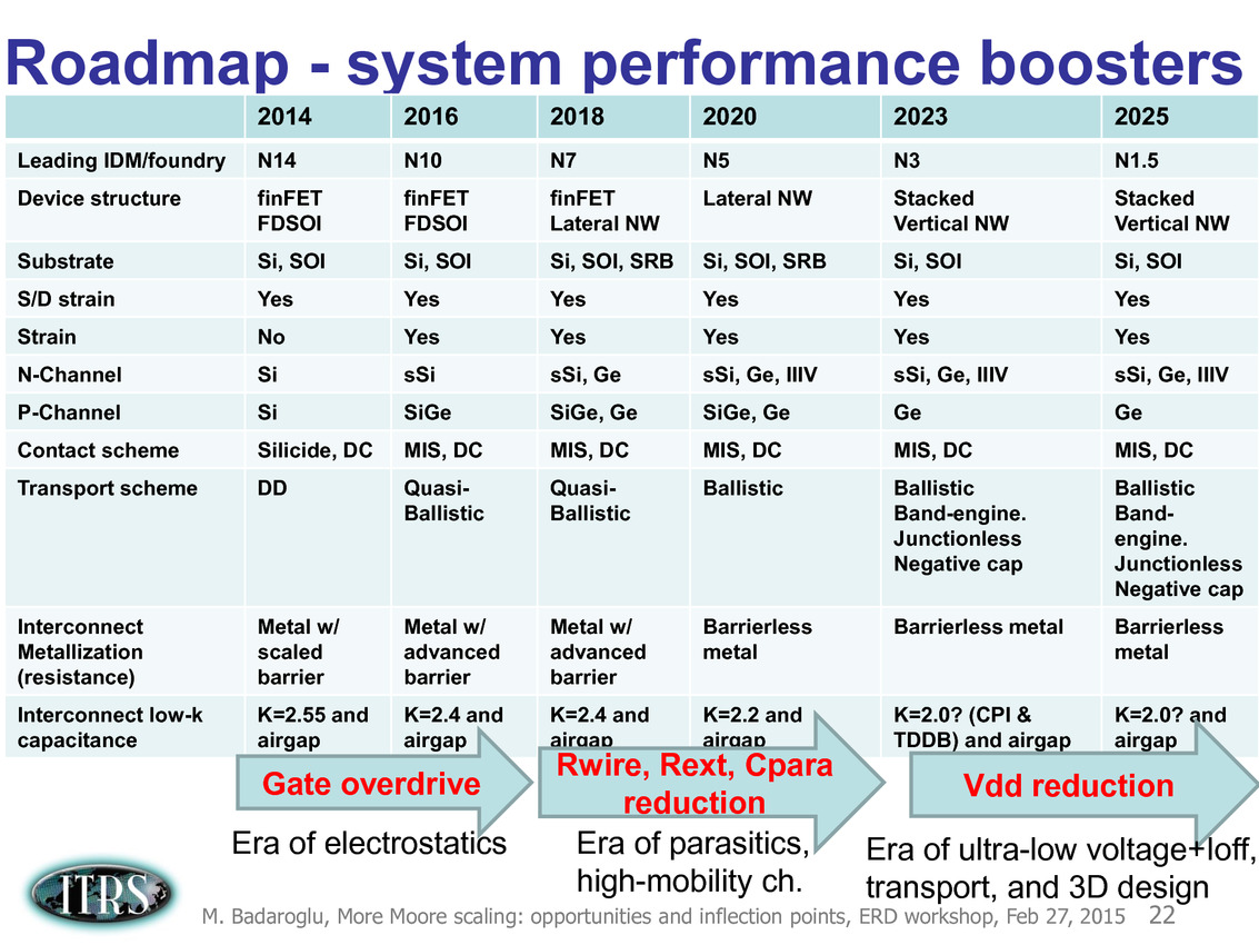 Ce que l'on sait, c'est que la réorganisation de l'ITRS en 2014 s'est faite autour de groupes de travaux, avec notamment un groupe baptisé « More Moore » pour évoquer les pistes techniques pour les prochains nodes, dont vous pouvez retrouver ci-dessous la dernière présentation datant de février 2015.