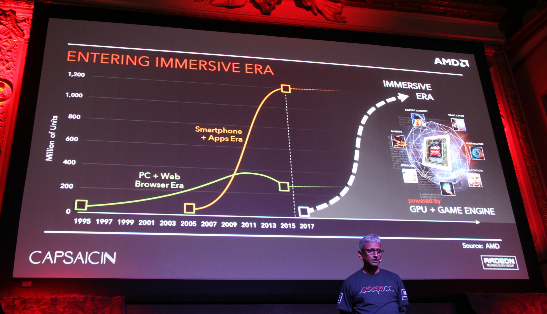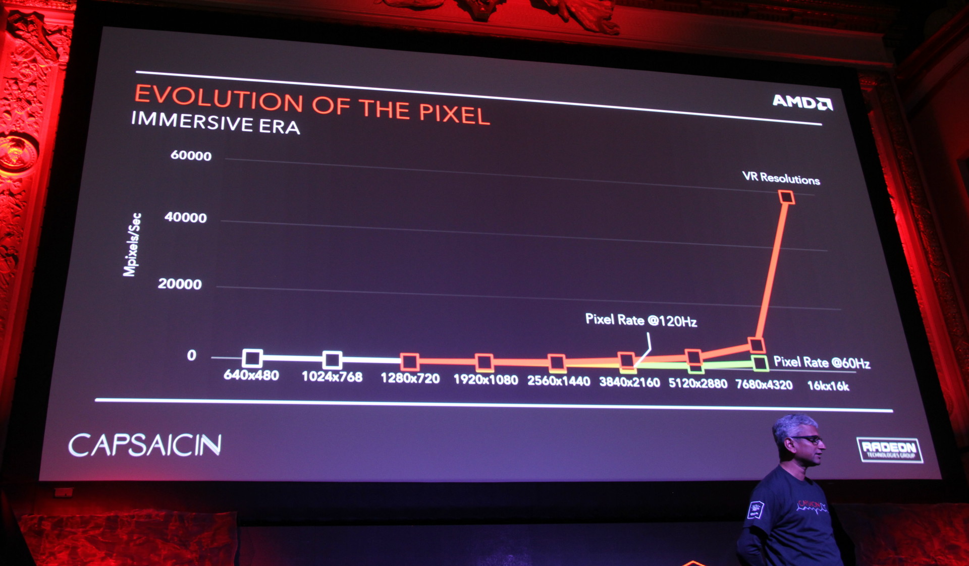 S'il y a un point sur lequel AMD ne manque jamais une occasion de revenir, c'est le besoin futur de toujours plus de puissance au niveau du sous-système graphique. Selon AMD, nous sommes au début de l'ère de l'immersion qui avec la réalité virtuelle va faire exploser les besoins en termes de résolution et donc de débit de pixels.