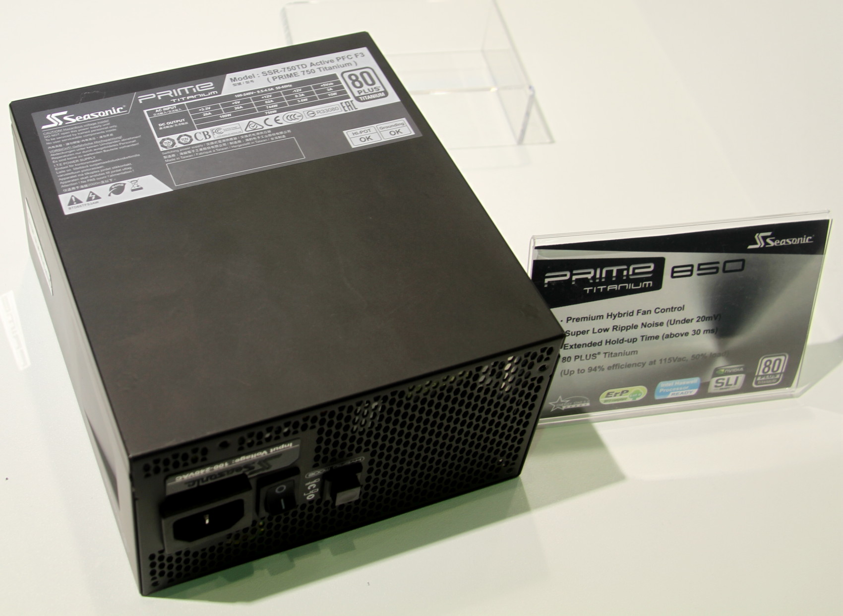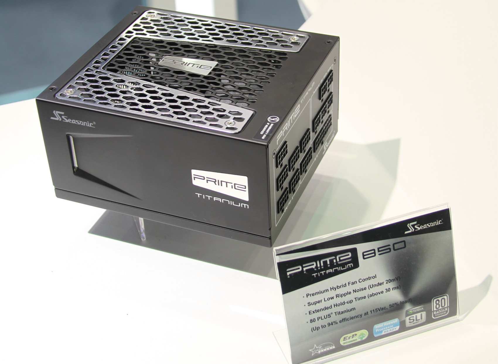 Pour les versions Titanium des alimentations Prime, Seasonic se contente par contre de modèles moins puissants avec du 650W (4 PCIe 6+2 et 6 SATA), 750W (4 PCIe 6+2 et 10 SATA) et 850W (6 PCIe 6+2 et 10 SATA). Un autre bloc Prime Titanium de 600W est également prévu et sera totalement passif.