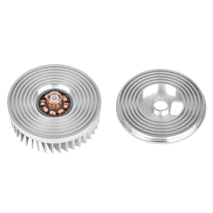 Le concept peut faire penser au système de refroidissement radial de Sandia dont nous vous avions parlés en 2011. Le principe de Sandia était de placer les ailettes sur une base en aluminium, elle même en rotation par rapport à une base posée sur le processeur. Le transfert d'énergie s'effectuant entre les deux plaques de métal par le biais d'une fine couche d'air (0.03 mm).